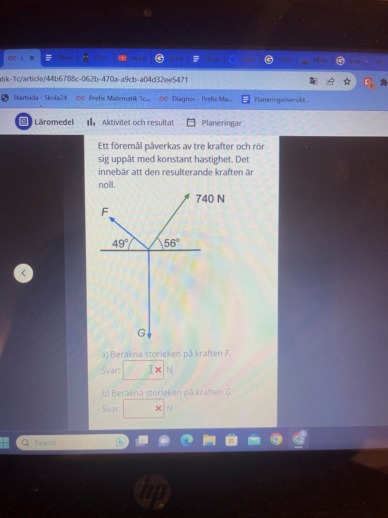 Dela upp kraften i en x- och y-komposant. Använd x-komposanten för att ta reda på F och F:s y-komposant. Efter det har du allt för att beräkna G.