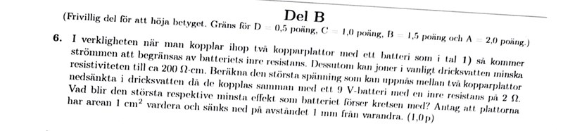 Jag fastnade på denna uppgift. Räknade ut totala kondensatorernas kapacitans. Men jag vet att P är sökt och det kan man ju få fram enligt P=U^2/Ri. Men de har gett oss även resistiviteten här, undra om vi ska använda den på något sätt?