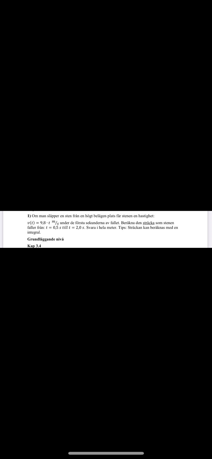 Fotnot: Boken gör ett grovt fel. Den skriver ”sträcka som stenen faller från: t = 0,5 s till t = 2,0 s”, med kursiverat s. Kursiv används för sträckan s.