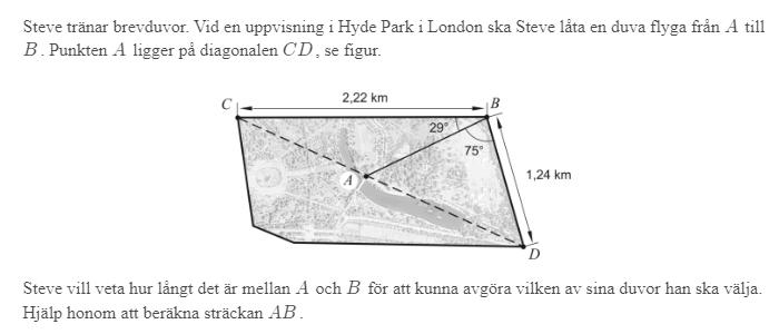 jag har använt cosinussatsen för att bestämma CD, få det till 2.8km.