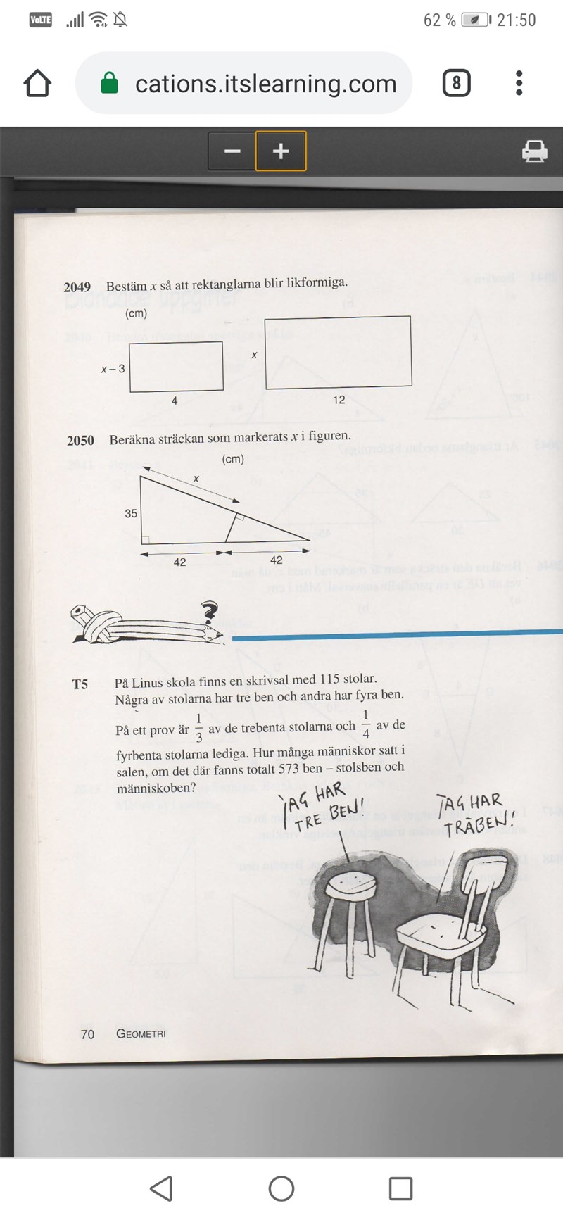 Men du är inte klar med detta, för det är ju  längden av  x  du ska räkna ut