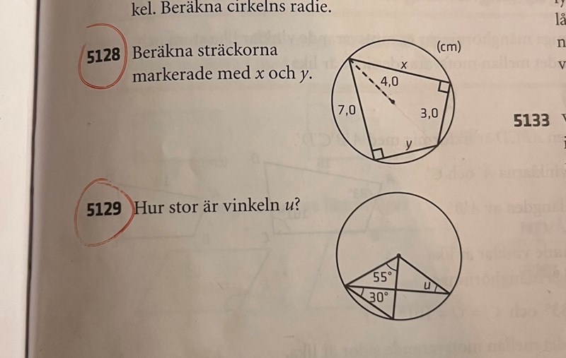 På 5128) bildas två rätvinkliga trianglar med en gemensam hypotenusa (som är cirkelns diameter = 8 cm).