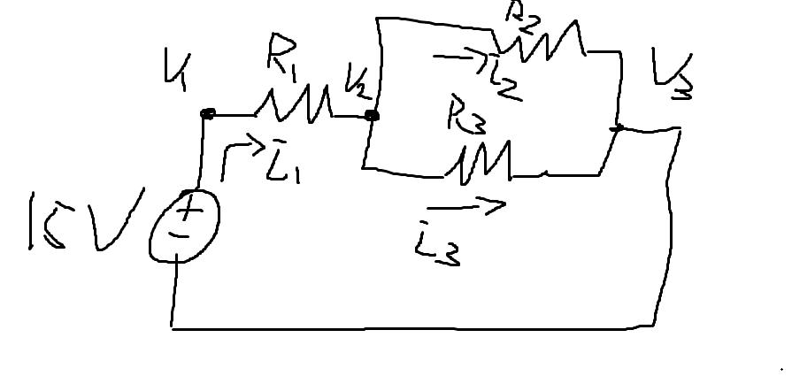 Du vet att , vilket ger att , nu vet du spänningen över R2 och R3, applicera ohms lag, .