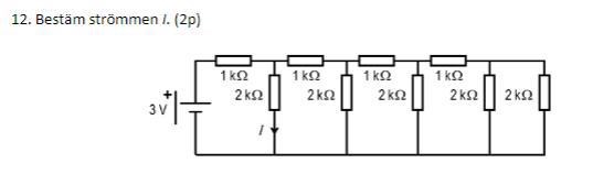 Den ström du har räknat fram genom att ta fram ersättningsresistansen för hela kretsen är . Är du med på det?