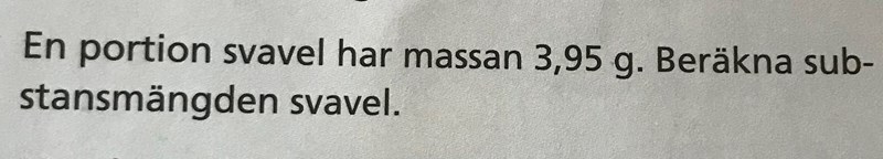 En portion betyder "en viss mängd". Det handlar om grundämnet svavel, S. (Gissningsvis blandar du ihop ordet portion med ordet proportion, som betyder andel.) Som vanligt behöver du använda formeln n = m/M.