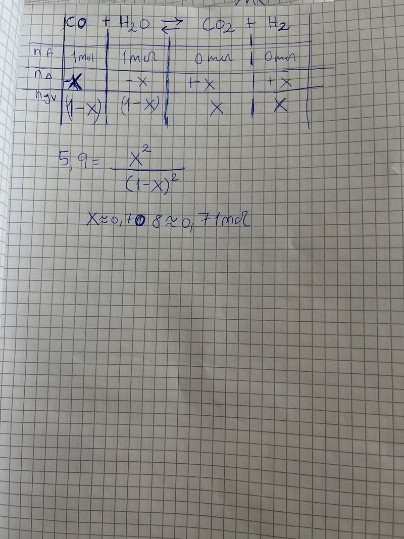 Hej! Har jag gjort rätt? Jag fick svaret 0.71mol vätgas