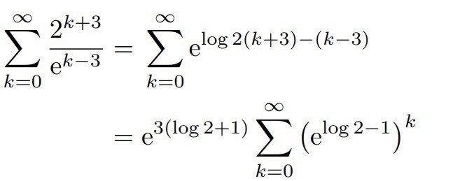 Varför blir exponenten 3log(2-1) i den andra raden?