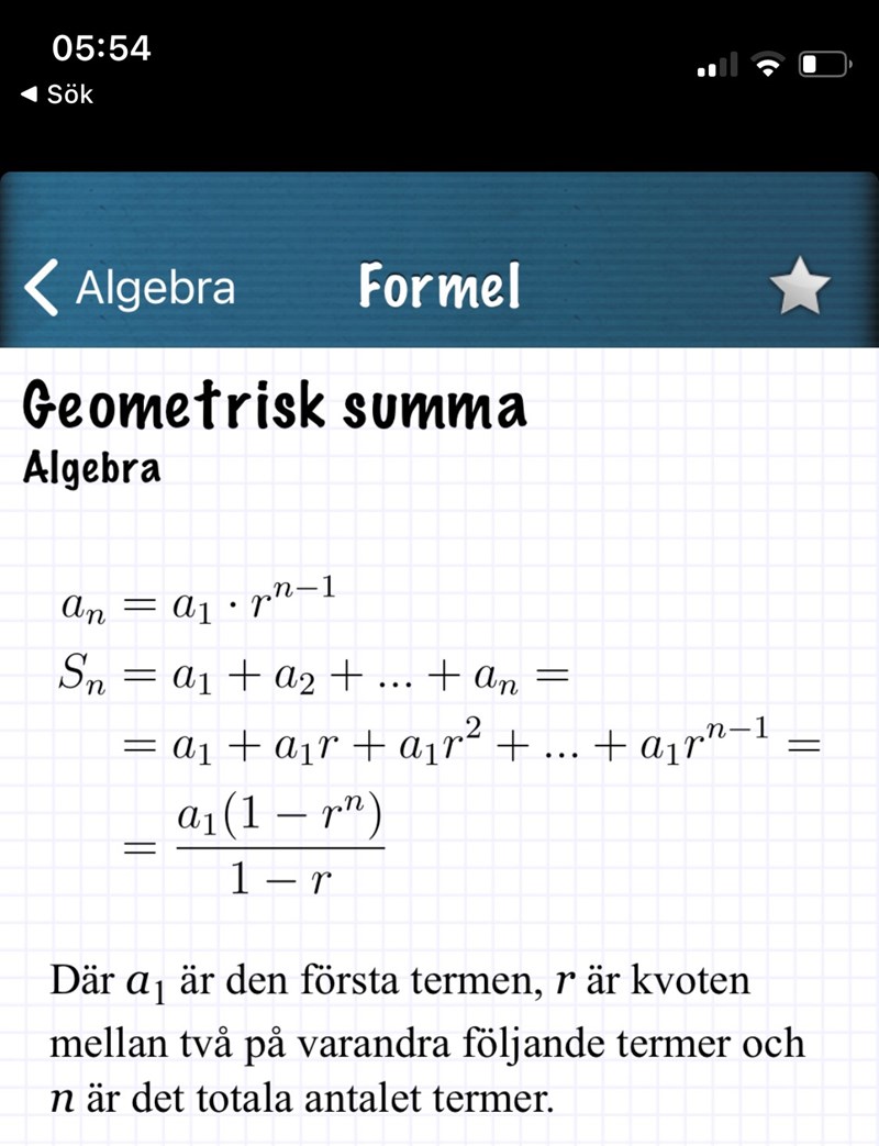 Det finns en formel för geometriska talföljder, känner du till den?