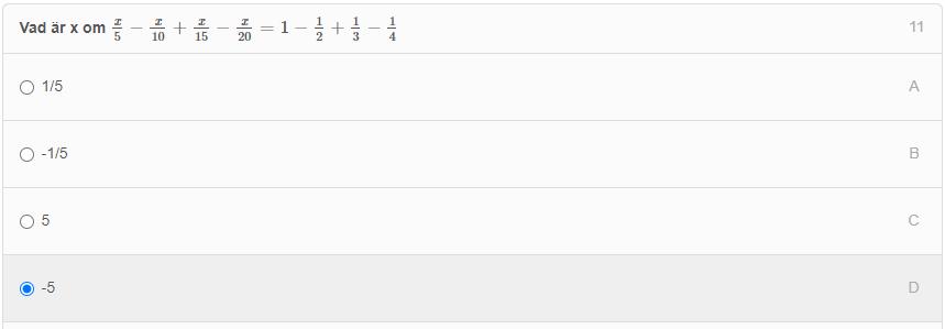x/10 resp 1/2, funkar det med 5 här med för att likhet ska råda?