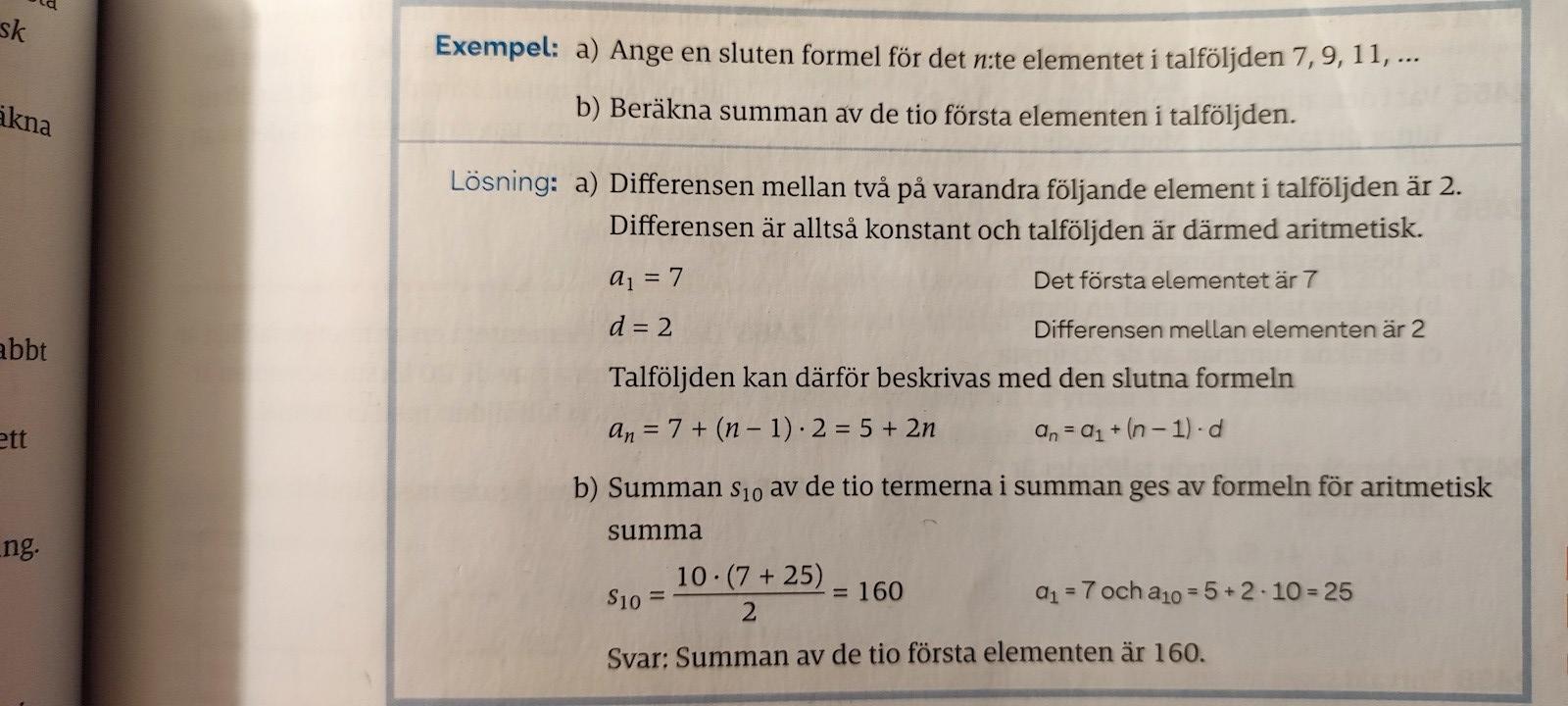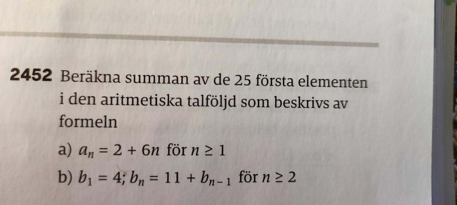 beräkna summan av de 25 första elementen i den aritmetiska talföljd som beskrivs av formeln