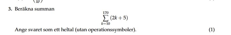 Eftersom vi börjar på k=10 tänker jag att vi är ute efter summan mellan 170 och 10 (170-10)=160