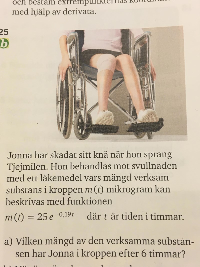 Visst kan man det, men det blir betydligt krångligare om jag gissar rätt att b-uppgiften är att ta reda på efter hur många timmar hon har en viss koncentration av substansen i blodet.