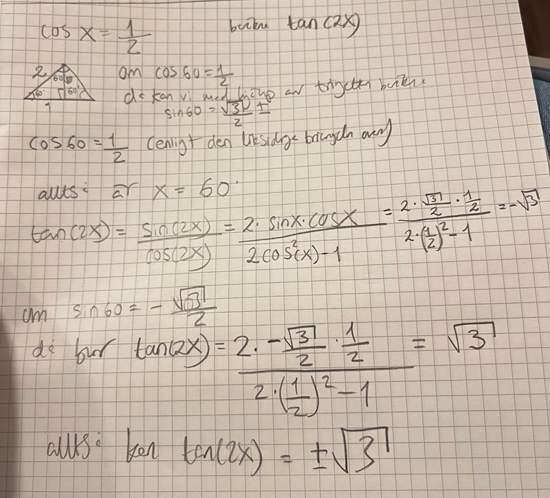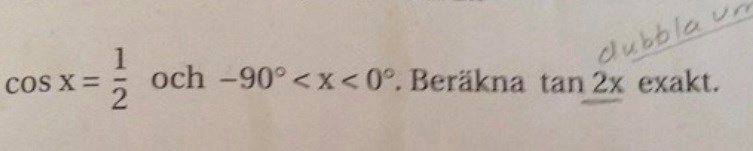 Precis. Då kan du få fram tecknet för tan 2x eftersom