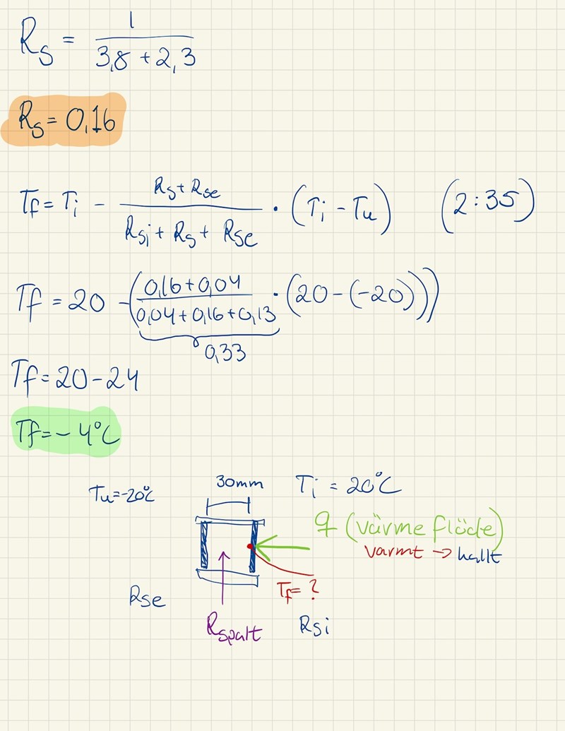 Sedan ska täljaren vara R-värdet för första glaset "" därför att det är temperaturen vid insidan av den som söks. Alltså 0.13, inte summan av de andra två som du gjort.