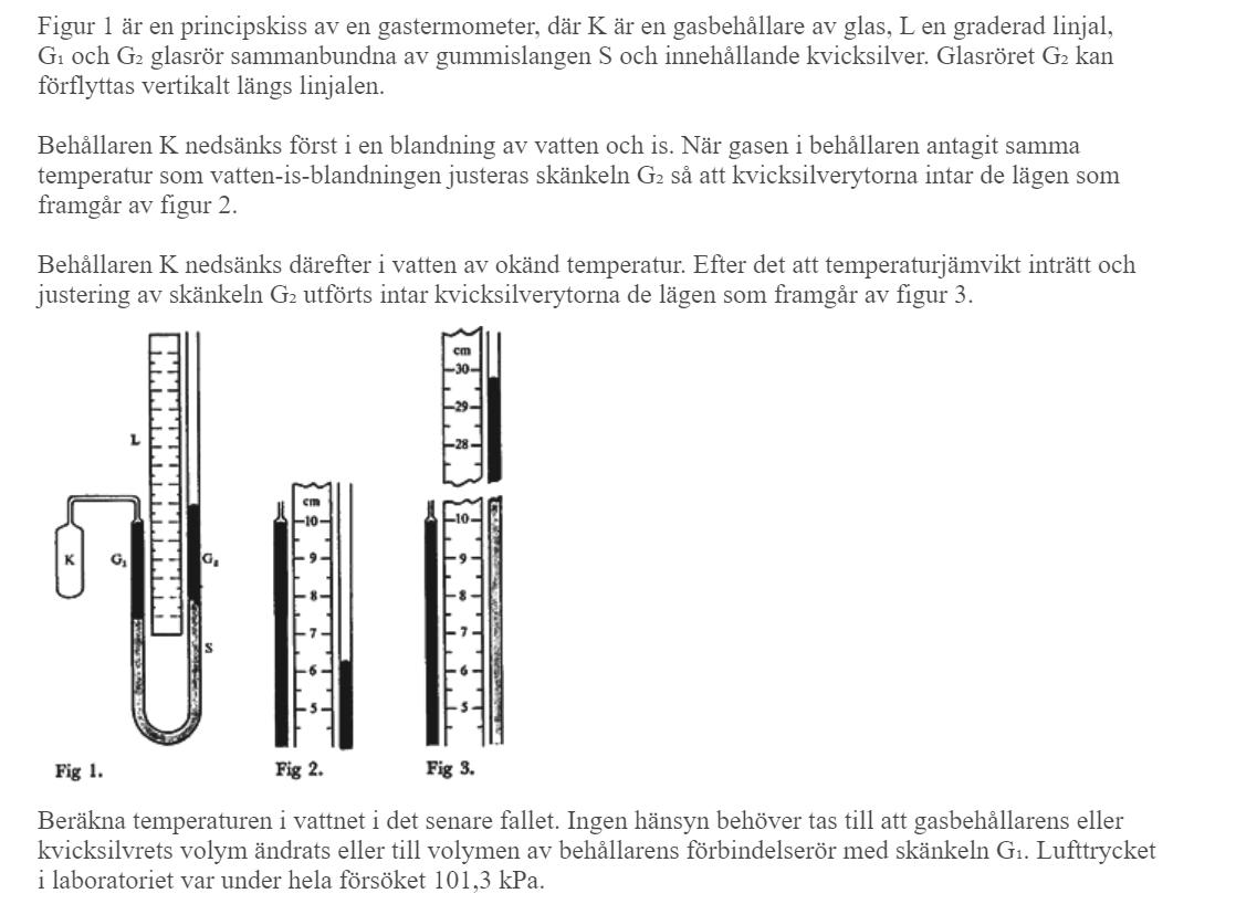 Efter detta vet jag inte vad jag ska göra, eller om ens jag har gjort rätt. Är rätt så osäker på tryck i sådana här behållare. Jag har en för många okända för att beräkna T och vet inte hur jag kan få tag på en tredje.