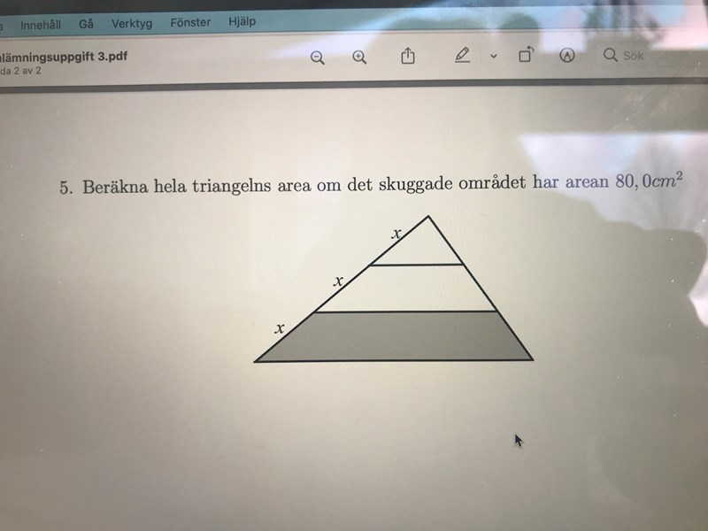 I det här exemplet räcker det med att känna till lagen om likformighet och hur du räknar area för triangel.