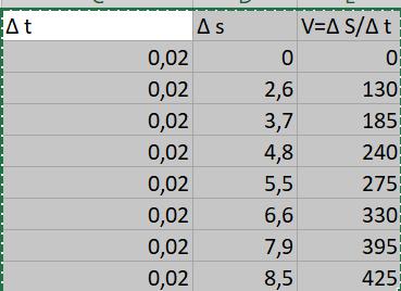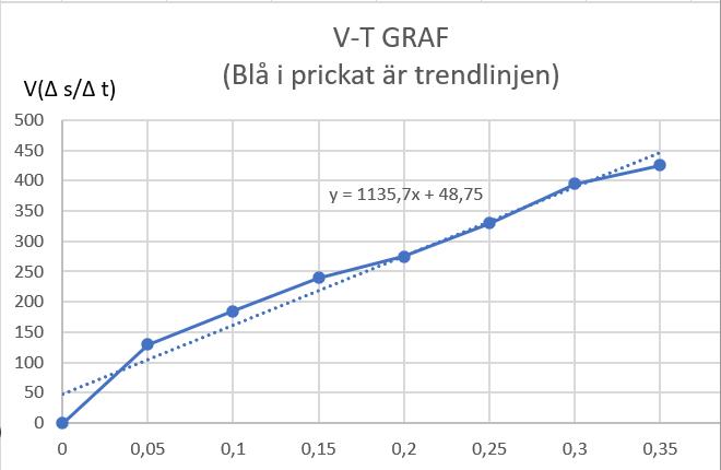 Beräknade ut hastigheten av ett föremål som föll i fritt fall. V är delta s/delta t alltså cm/s och värdet på X-axeln är tiden