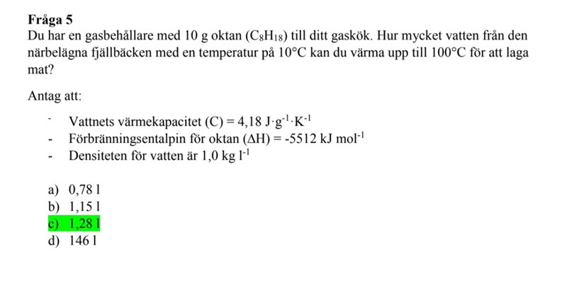 0,88*9=0,789 (1 mol C8H18 ger 9 mol H2O