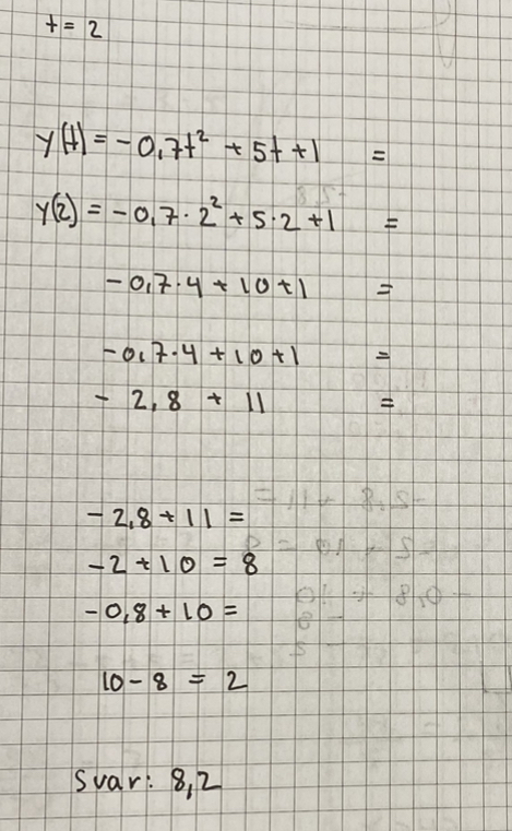 Jag hänger med i alla steg förutom de sista. Vet inte riktigt hur jag räknar ut: -2,8+11 för att de är ett minus tal med decimal. Kom fram till rätt svar, men jag har fått räkna ut de på ett sätt som för min hjärna är typ logisk men säkert helt fel på papper. Så skulle uppskatta typ någon som visar stegen mer korrekt. För jag vet inte om mitt sätt i framtiden kommer göra de svårare för mig att räkna på.