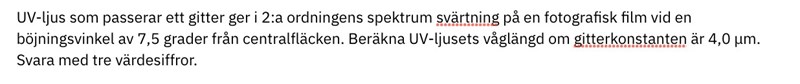 Beräkna våglängd av ett UV-ljus om man har gitterkonstant