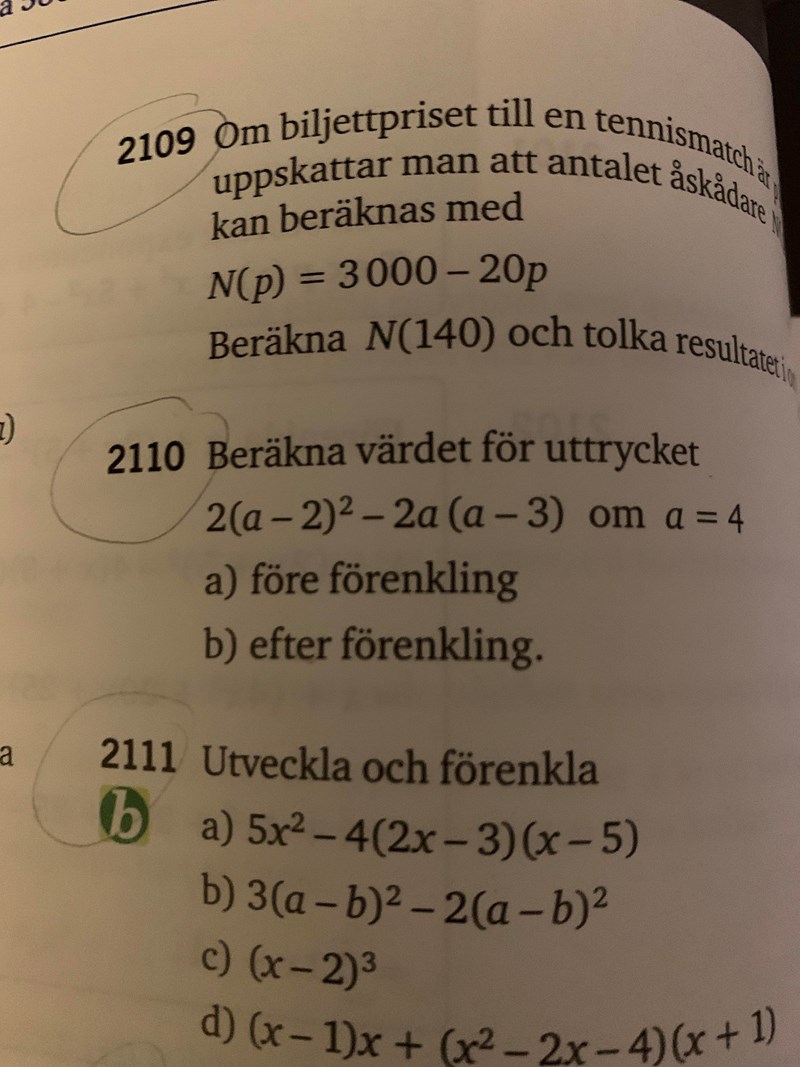 Menar du 2110? Hur har du gjort när du beräknat värdet i a) respektive förenklat och därefter hittat värdet i b)?
