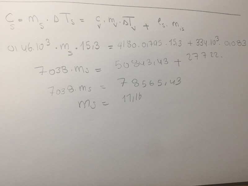 värmeenergiminskning stål = värmeenergiminskning vatten + värmeenergiökning is