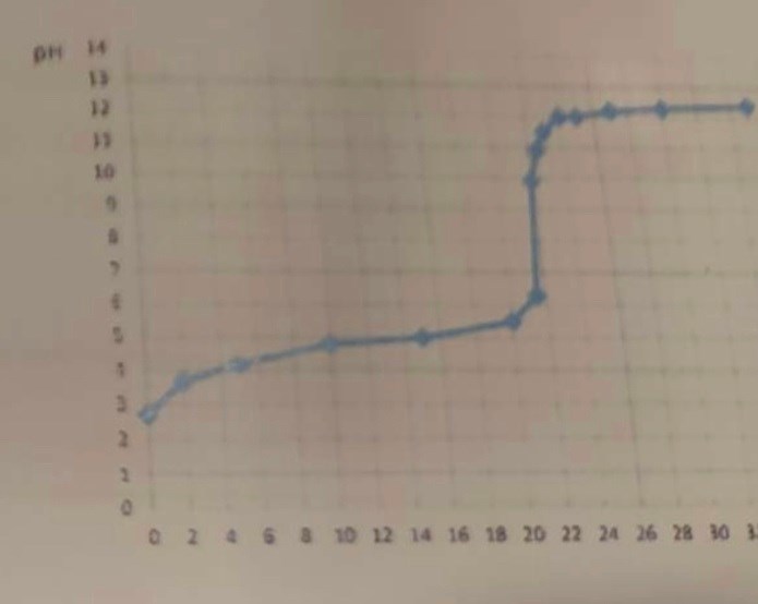 Kurvan visar att det har använts 22 ml naoh och ekvivalens punkten står vid pH 8, så vad menar du med att jag ska kolla på titerkurvan?