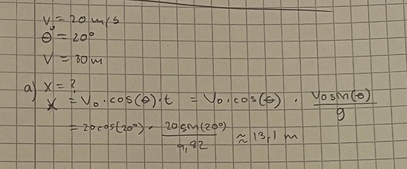 Den åker uppåt lite åsen vänder. Men det jag har försökt räkna ut är sträckan i x-led och förstår inte vad jag gjort fel.