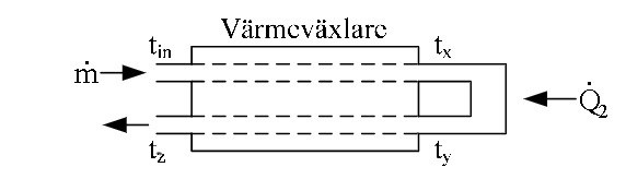 * Sökt är Tx dvs temperatur innan Värmeflödet Q2 och efter att ha passerat en motströmsvärmeväxlare!