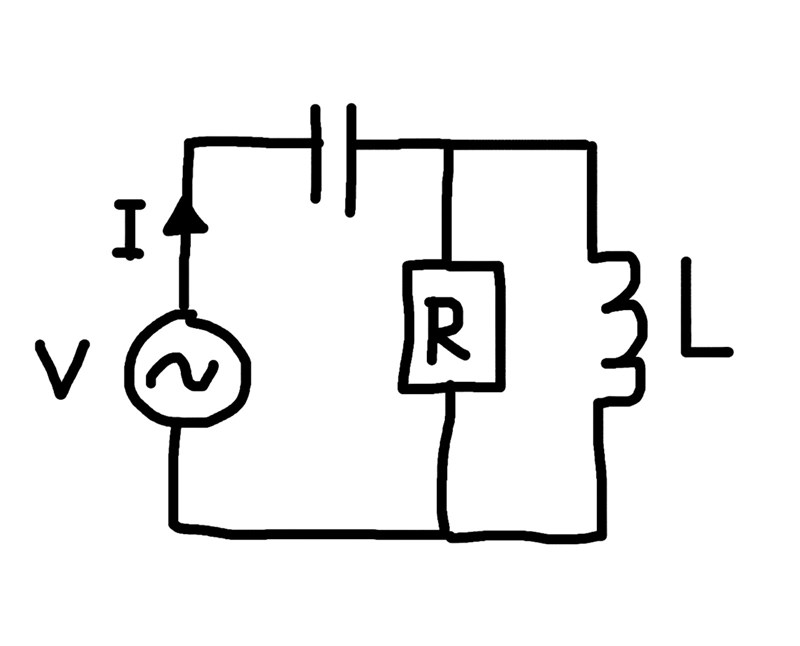 Ikomplex=I1+I2=((1/jwL)+ (1/((1/jwC)-R))Veff