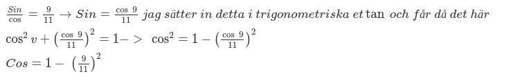 Beräkna  sin v , om man vet att tan(v)911