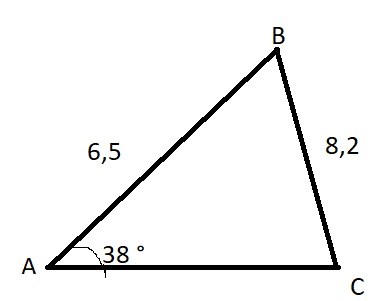 Jag skulle behöva hjälp med vilken sats jag behöver för att räkna ut den mellanliggande vinkeln. Blir osäker på om man kan använda tan, sin och cos i icke rätvinkliga trianglar? Frågan är följande: I triangel ABC är AB=6,5 cm, BC=8,2 cm och vinkel A är 38 grader. Jag ska bestämma vinkel C. Vilken sats ska jag börja med?