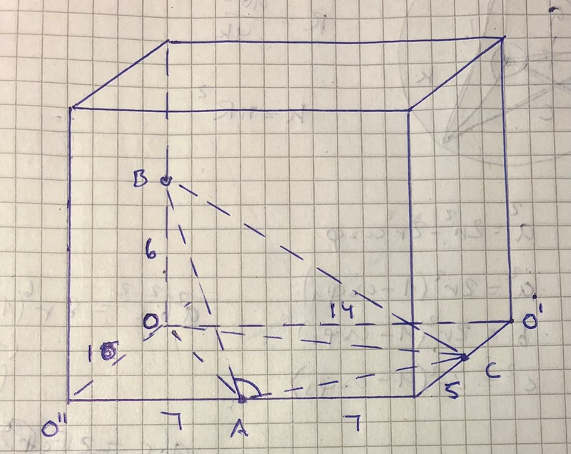 Sen fås vinkeln ur cosinussatsen för AB, AC och BC