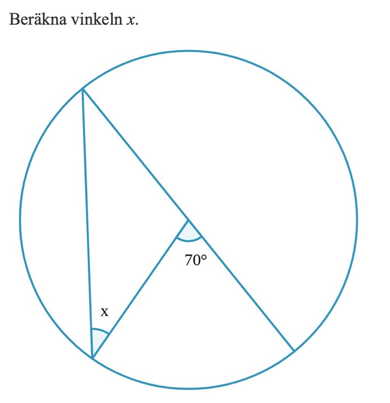 Du kan använda randvinkelsatsen, att randvinkeln högst upp är hälften av medelpunktsvinkeln 70o.