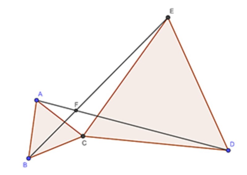ABC och CDE är två liksidiga trianglar. De båda trianglarna har C som en gemen-