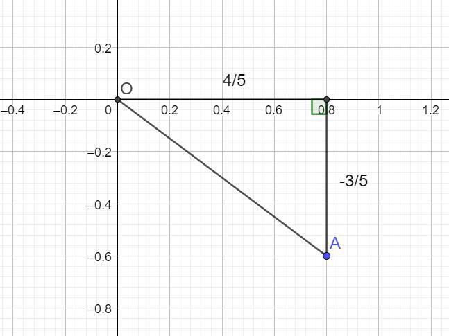 Punkt A ligger på enhetscirkeln. Räknade ut det med hjälp av trignometriska ettan.