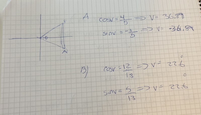 Ture skrev:jo, och dom frågar efter triangelns vinkel vid origo, vilket motsvarar summan av de två vinklarna du räknat ut.