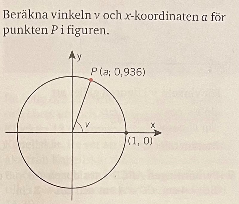 Beräkna vinkeln v och x-koordinaten a för punkten P i figuren