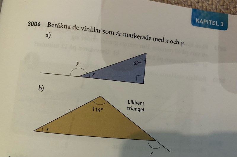 du får ta och använda de befintliga vinklarna för att först få fram x,