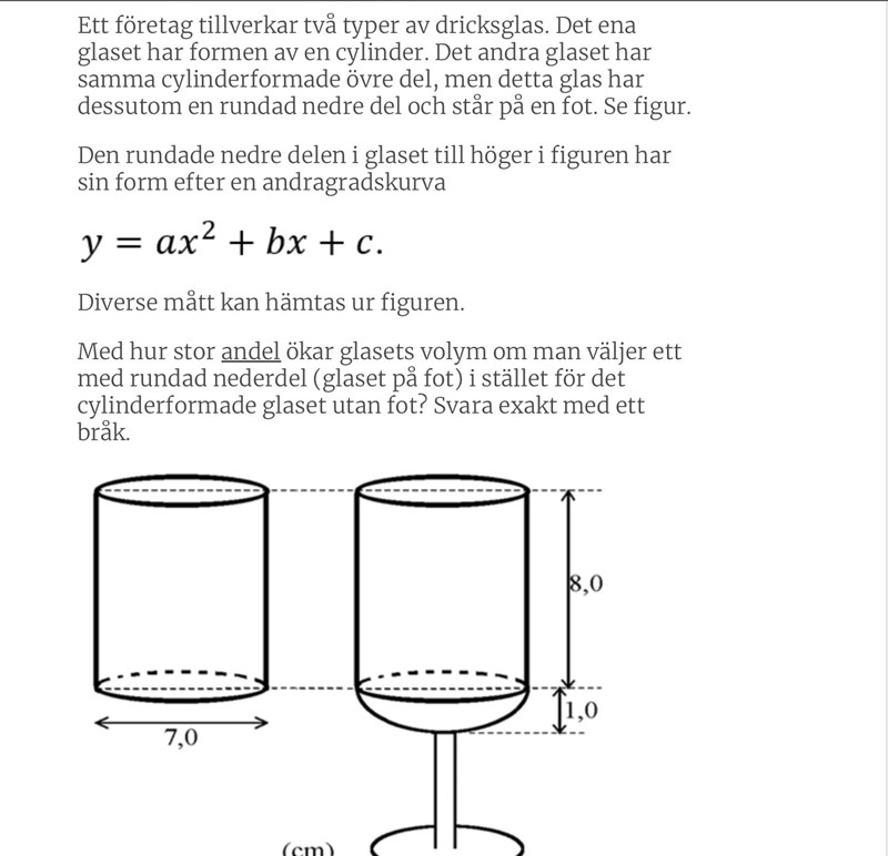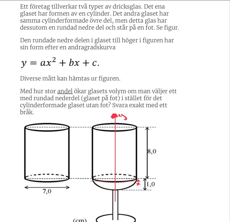 Jag räknade volym för glaset till vänster genom att pi * r^2*h=pi*3,5^2*8=