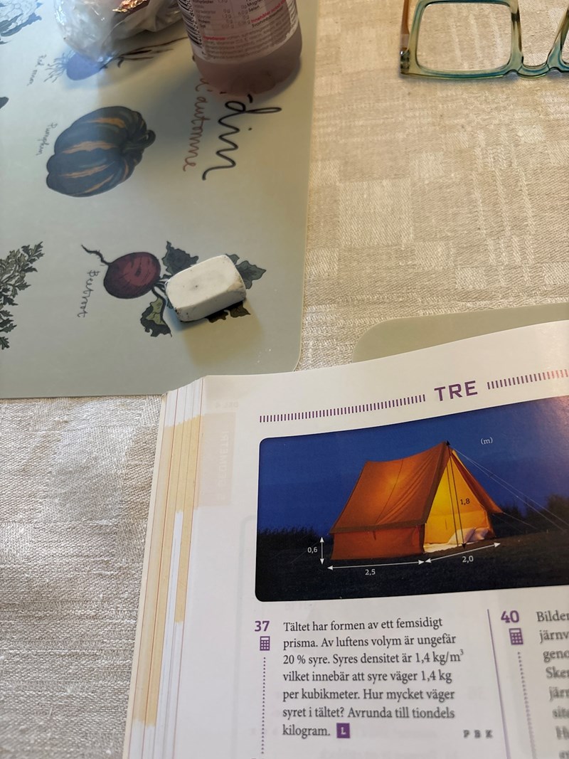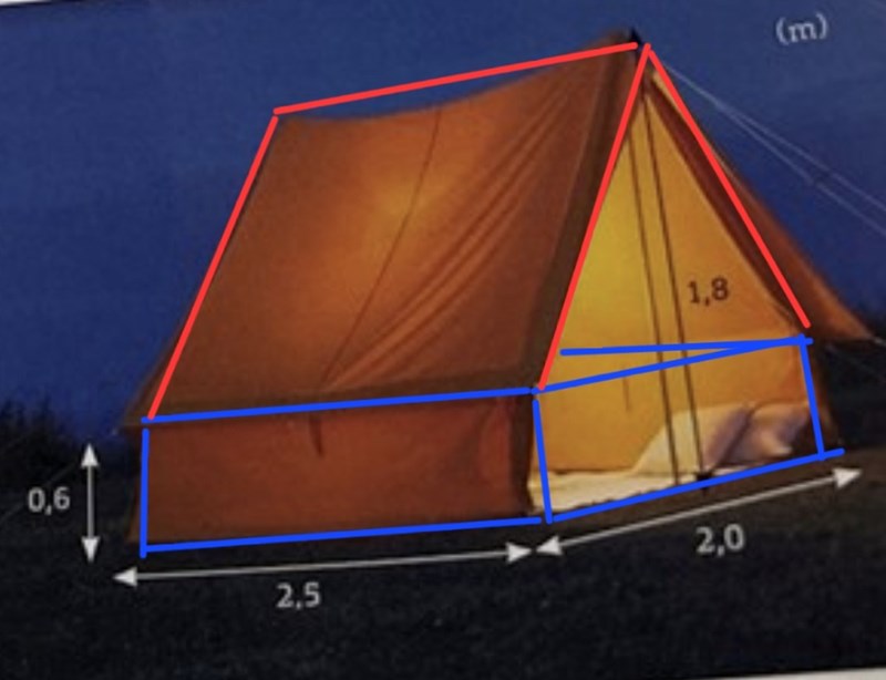 Börja med att beräkna tältets volym.