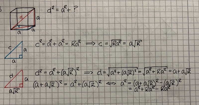 Beräkna volym av kub m.h.a rymddiagonal