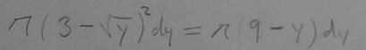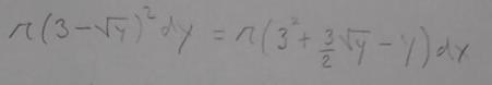 Du har valt skivmetoden, där den kropp som ska volmberäknas delas in i ett stort antal cirkulära skivor som är vinkelräta mot rotationsaxeln, i det här fallet y-axeln. Skivorna är väldigt tunna och de kan därför ses som väldigt låga cirkulärcylindrar, där varje cylindern har radien och höjd .