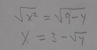 Här gör du fel med roten ur. Testa att sätta in ett värde på y (något annat än 0) i de 2 högerleden så ser du att det är fel: