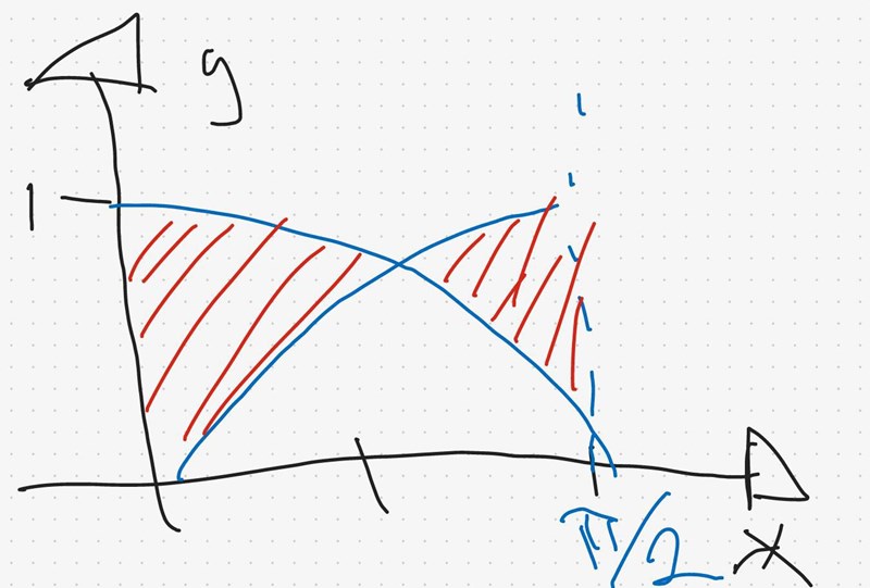 Du har missat att rita in linjerna x = 0 och x = pi/2.