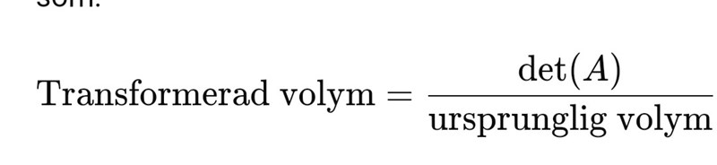 En volym som är 1 (t.ex den sökta kuben) avbildas då på något med volym 11/3, eftersom (volym)skalan är samma överallt i den linjära avbildningen.