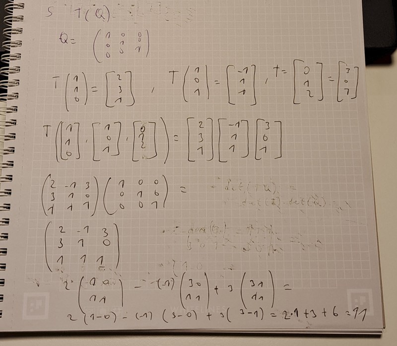 Så formeln är avbildningsskalan=determinanterna av T/Determinanten av Q?