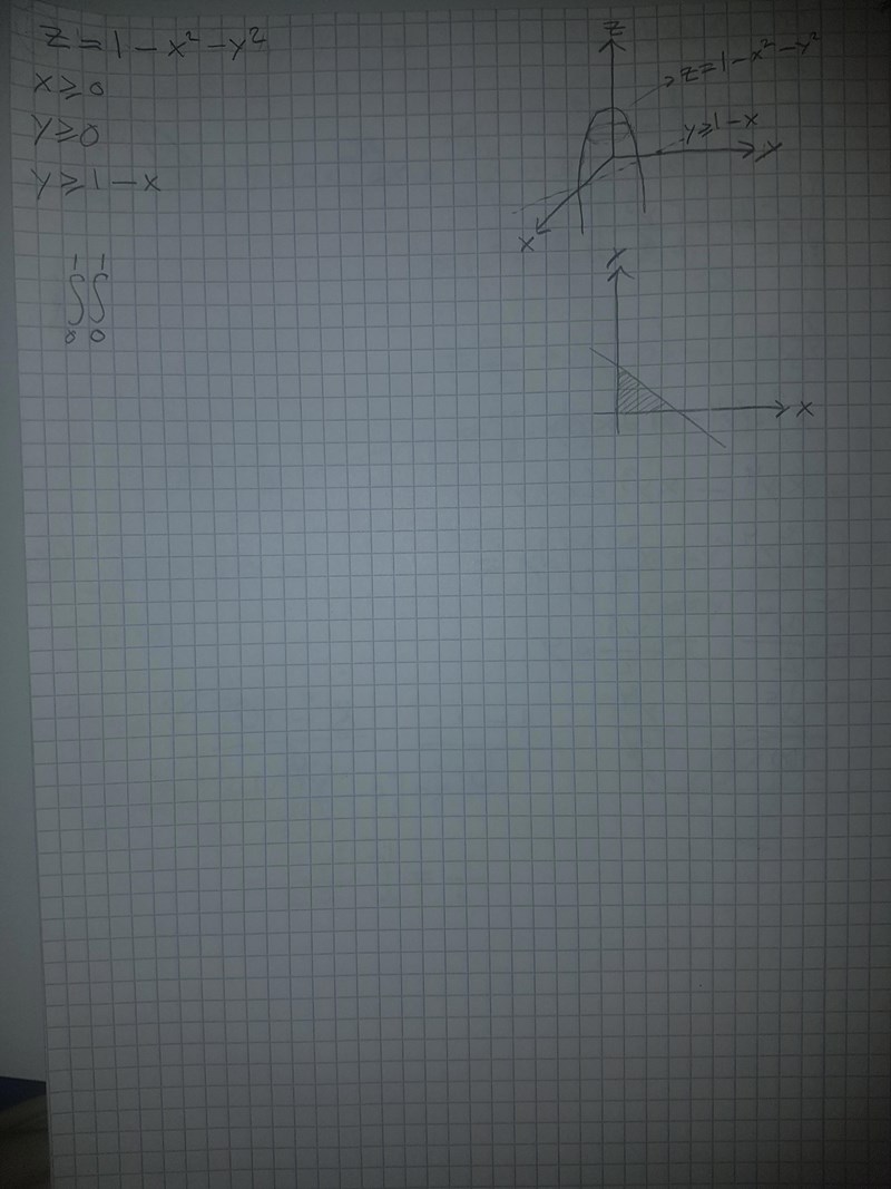 Laguna skrev:Det blir en dubbelintegral. Du kan välja om du vill integrera över x först eller y. Vilket väljer du?