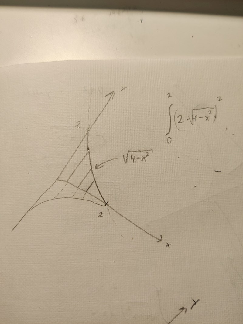 Uppgiften säger att sidan är Roten ur ( 4-x²). Men problemet är att om jag ritar upp hur tältet isf kommer vara, blir det en fjärdedels tält. Kolla på följande bild: