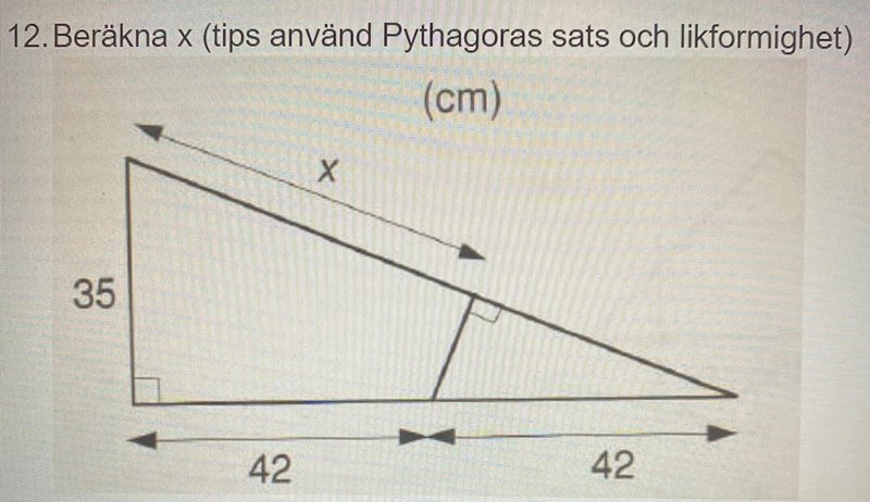 Beräkna X med hjälp av Pythagoras och likformighet